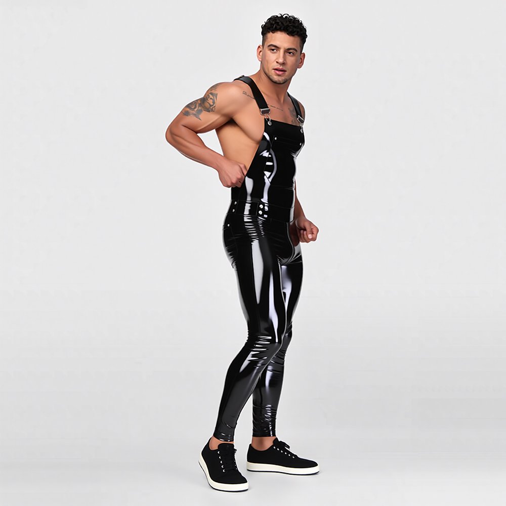LATEX PANTS ADJUSTABLE TIGHT-FIT SUSPENDER PANTSAdjustable Latex Suspender Pants – Kinky Fetishwear / Modern Aesthetic