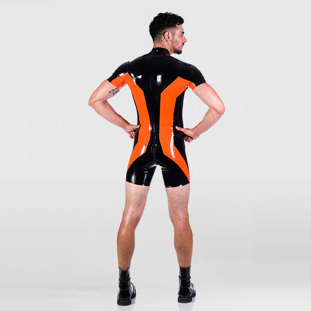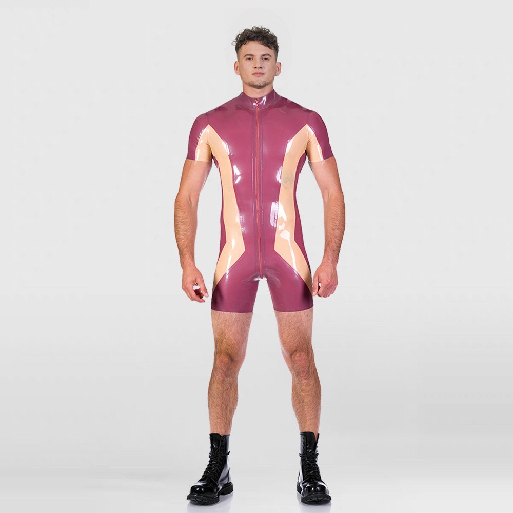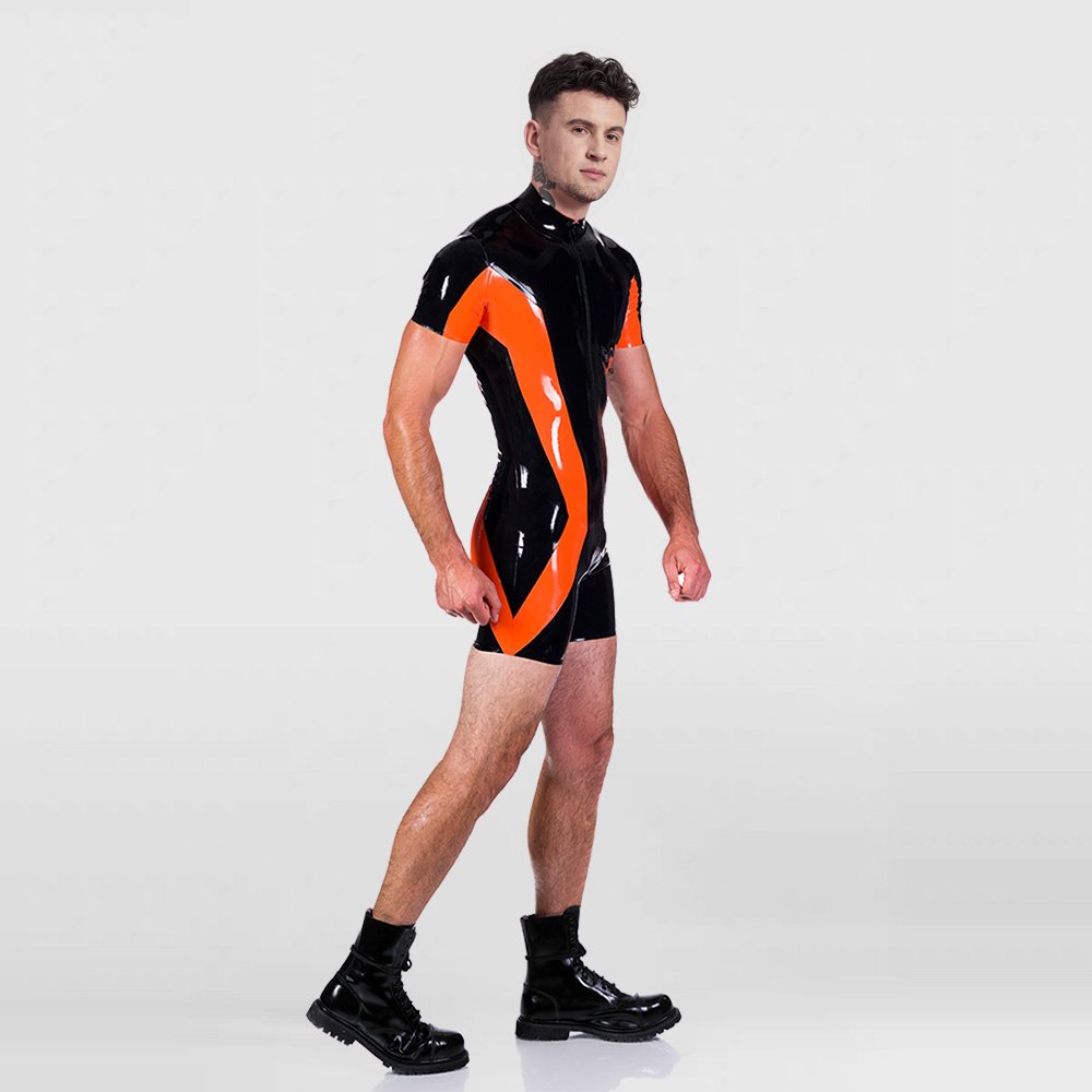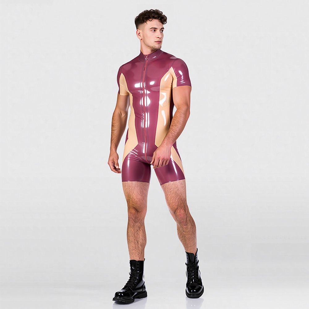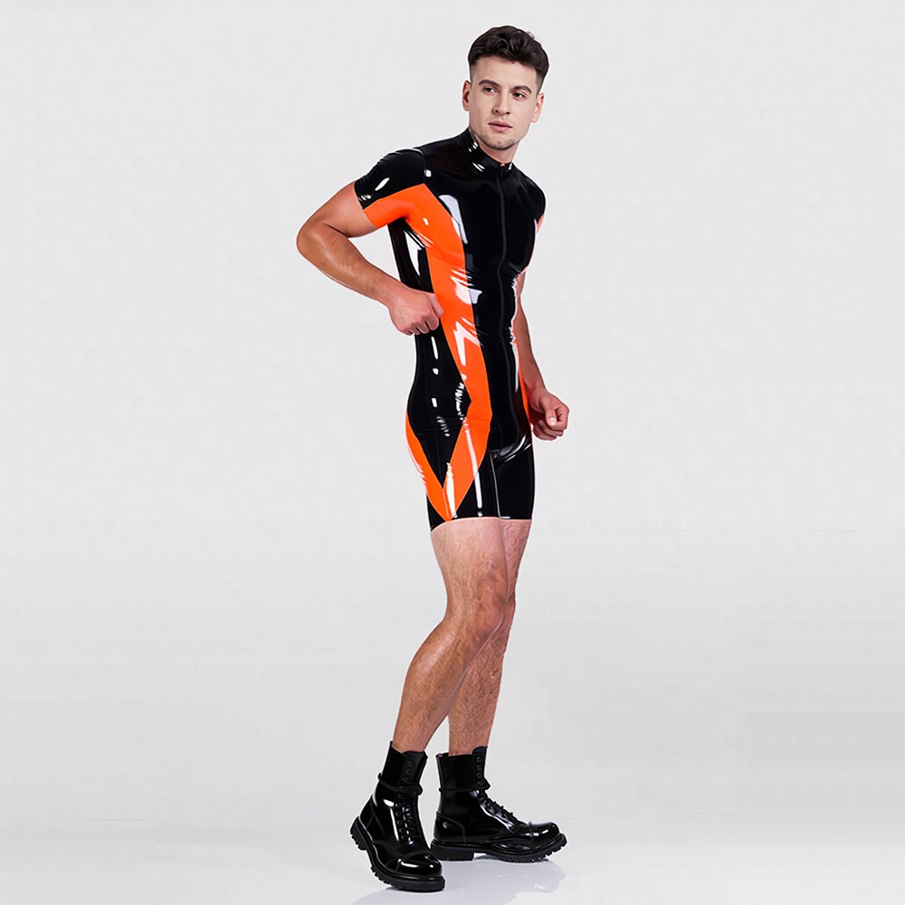 Color-Block Latex Bodysuit with Symmetrical Polygon Design