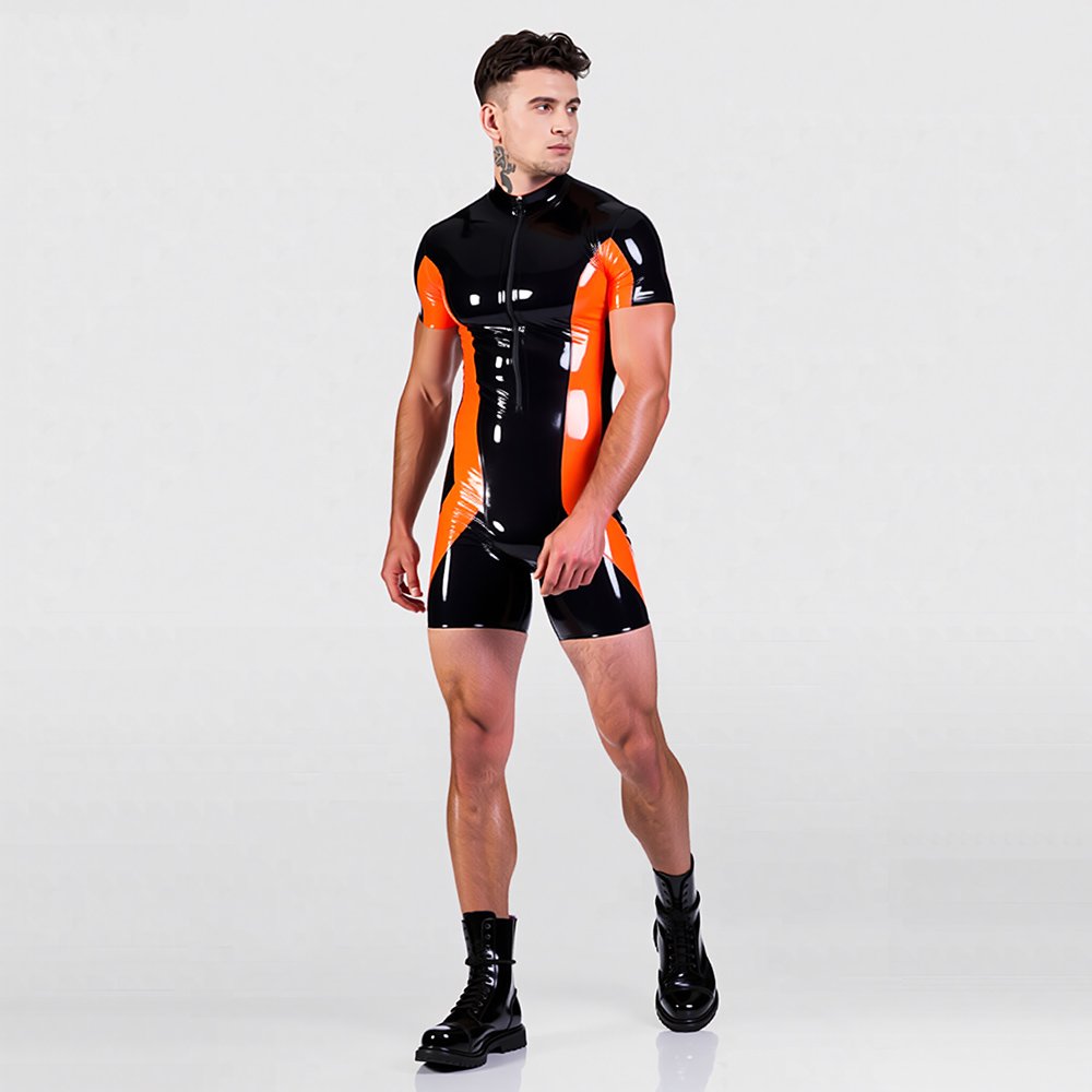 Color-Block Latex Bodysuit with Symmetrical Polygon DesignPrice range: $278.10 through $296.10Select options