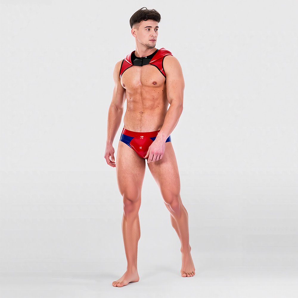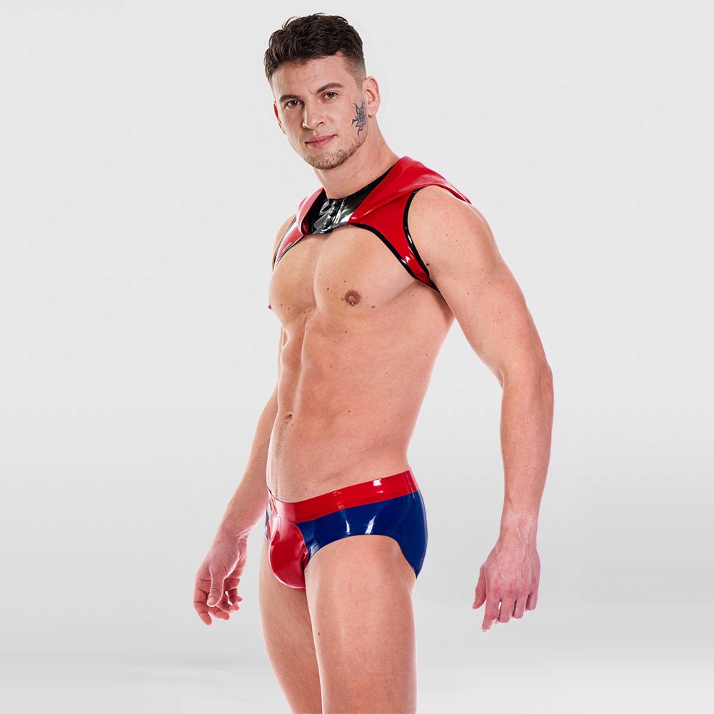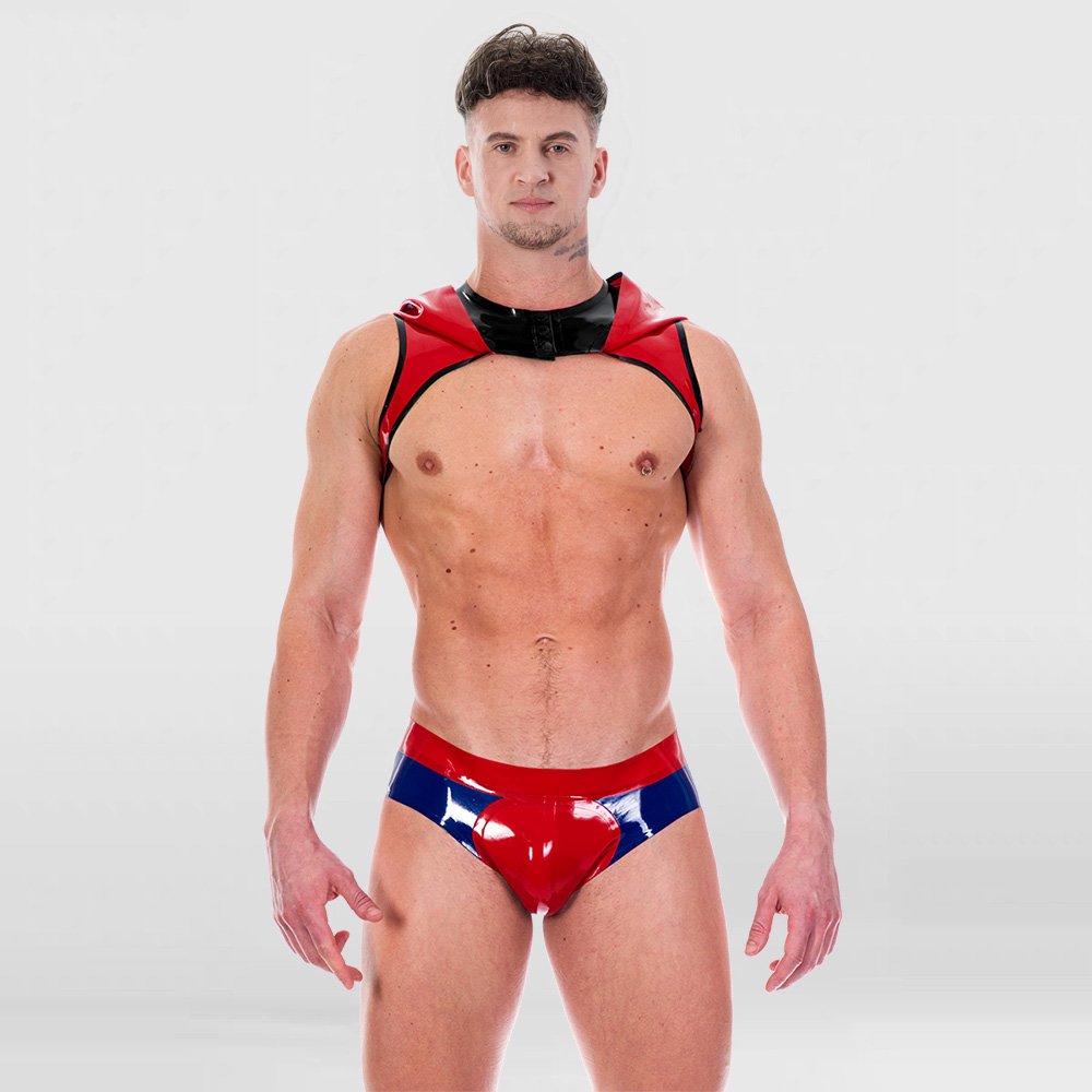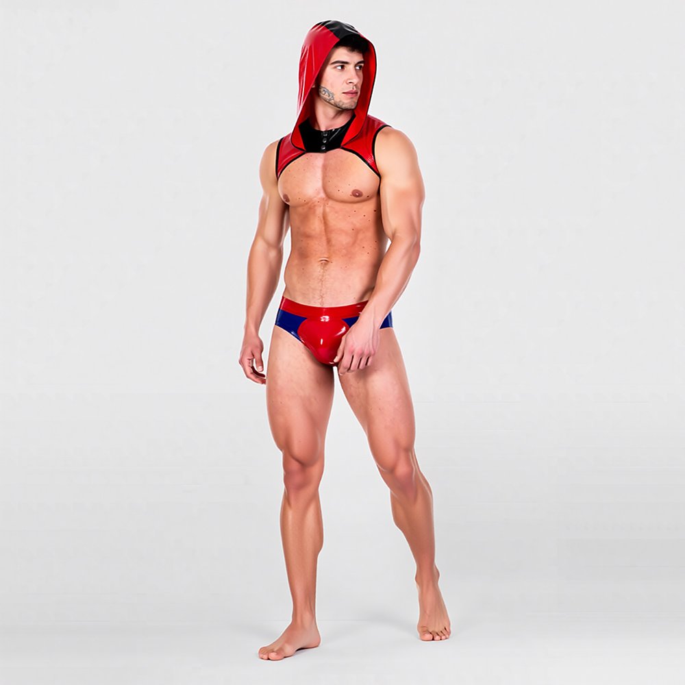 Color-Block Latex Crop Top – Loose Fit with Hood and Suspenders/Erotic
