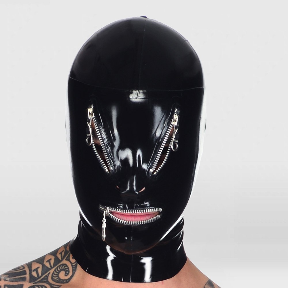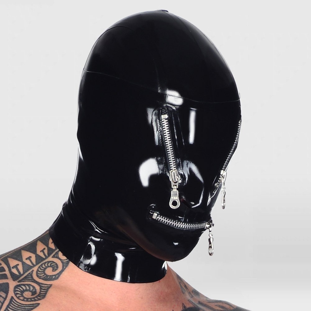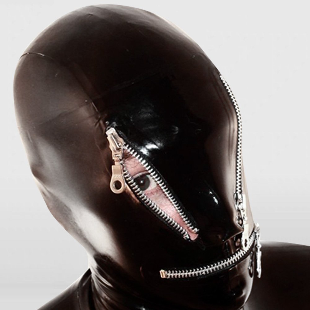 Fully Enclosed Latex Bondage Hood with Zipper Restraint/BDSM
