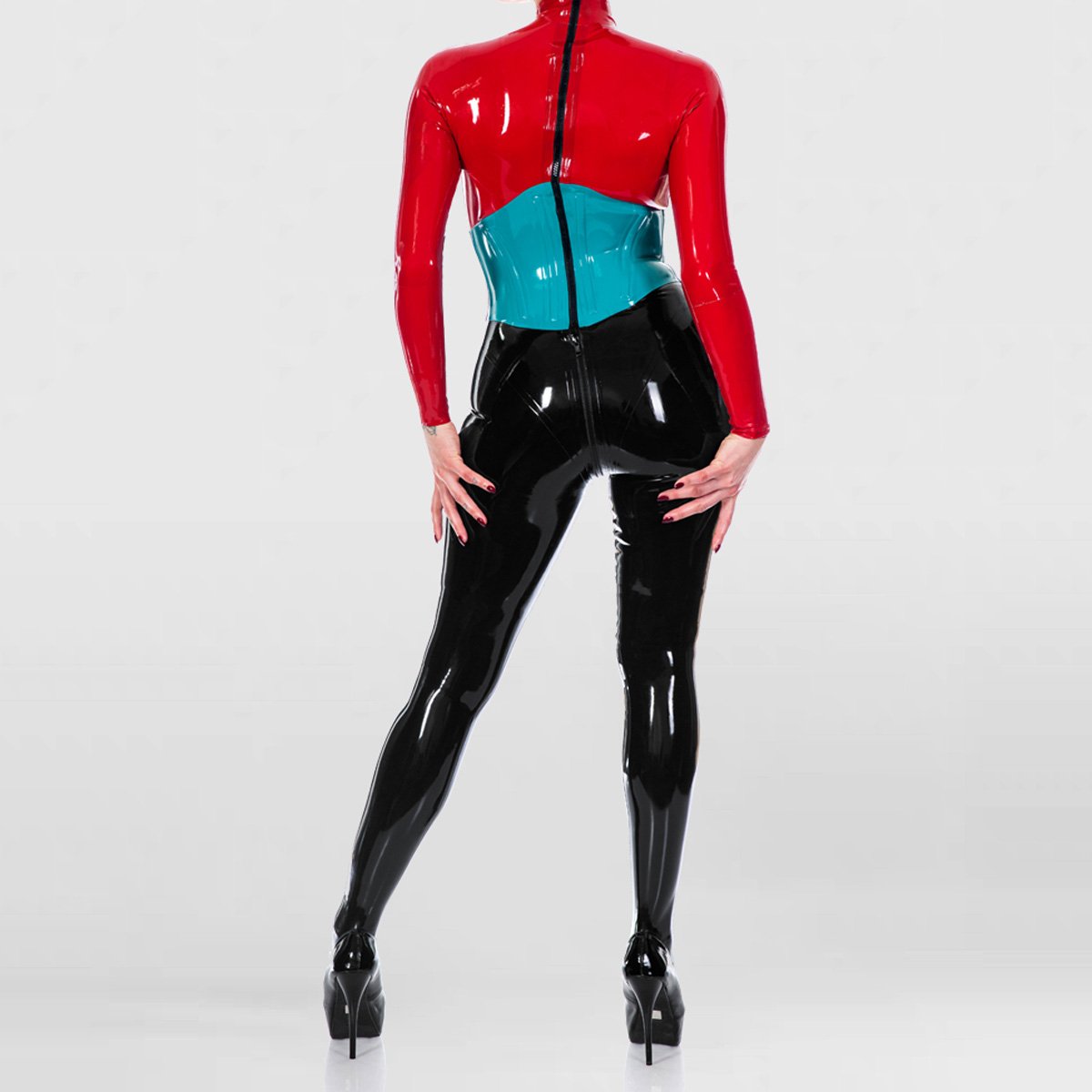 Latex Catsuit for Women – Tri-Color with Corset Detail