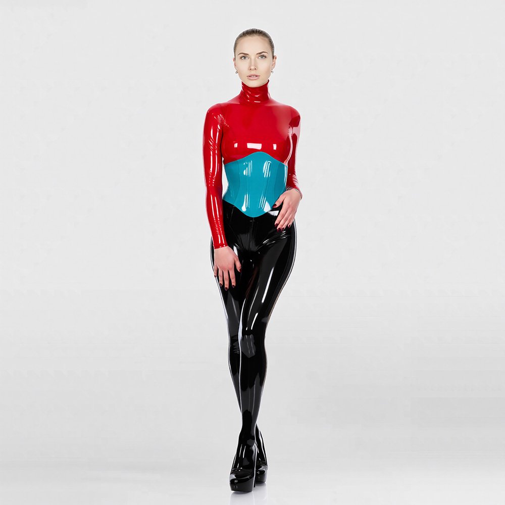 Latex Catsuit for Women – Tri-Color with Corset DetailPrice range: $346.50 through $360.00Select options