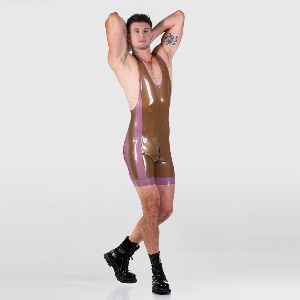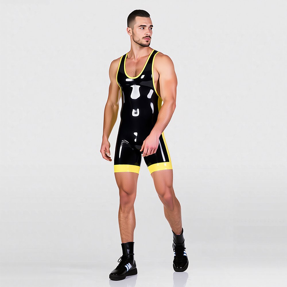 Men’s Color-Block Latex Bodysuit – Wrestling Singlet with Zip Price range: $309.00 through $329.00Select options