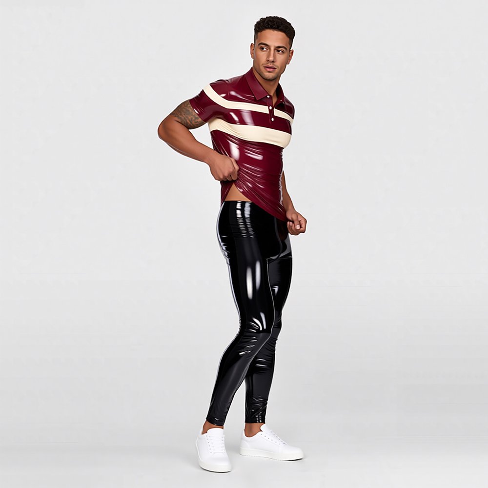 Men’s Contrast Stripe Latex Polo – Modern Business Casual, Sleek Design Men’s Contrast Stripe Latex Polo – Modern Business Casual, Sleek Design