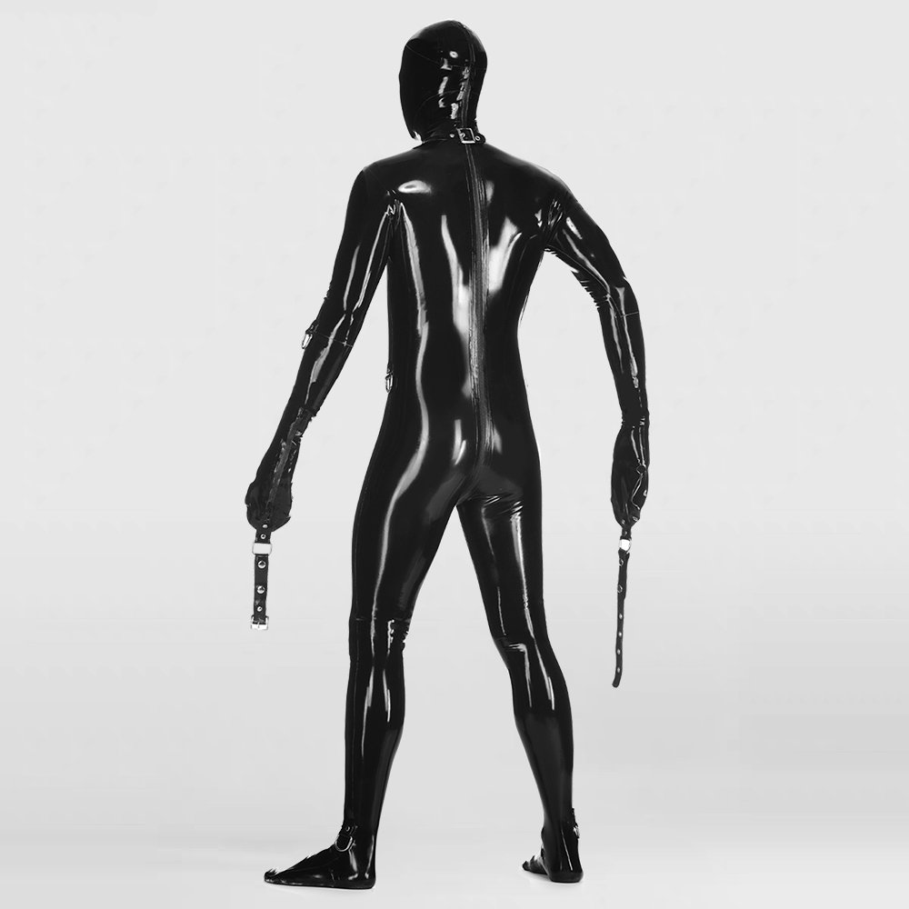 Men’s Latex Catsuit – Solid Color Tight-Fit Bodysuit with Back Zipper and Full Restraint
