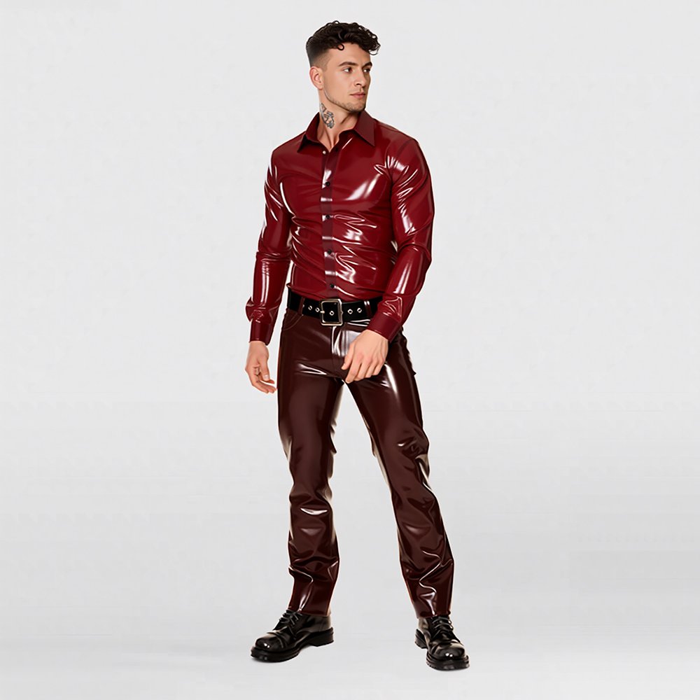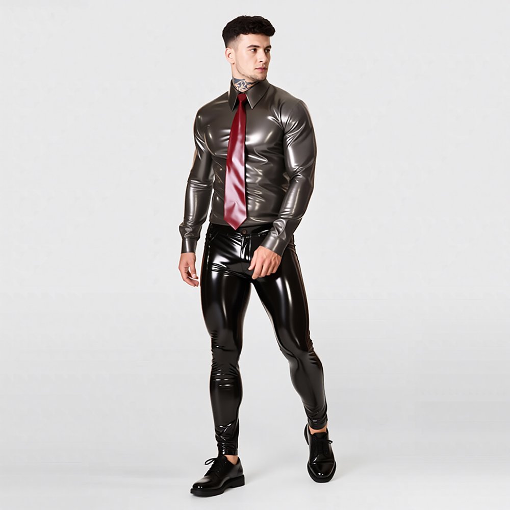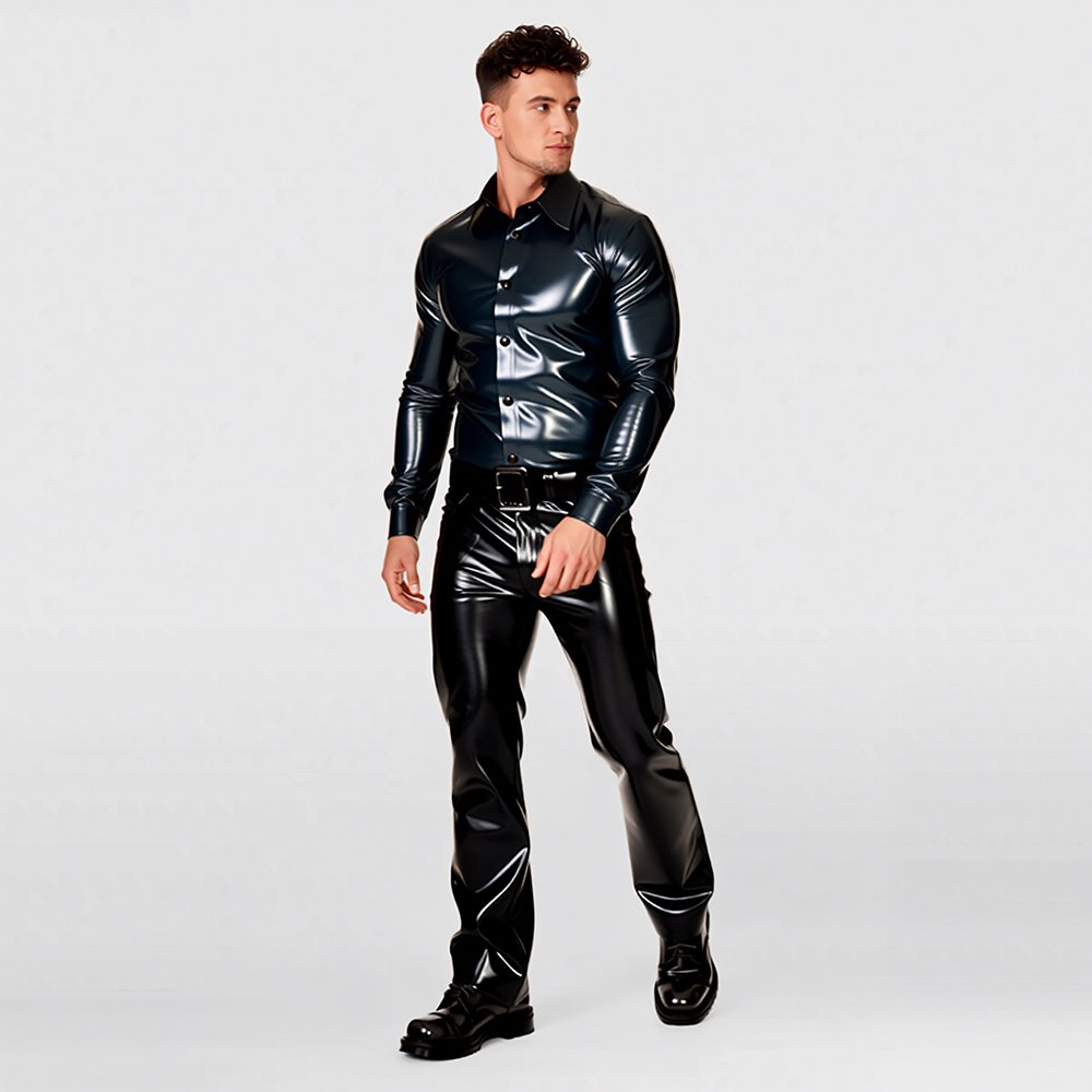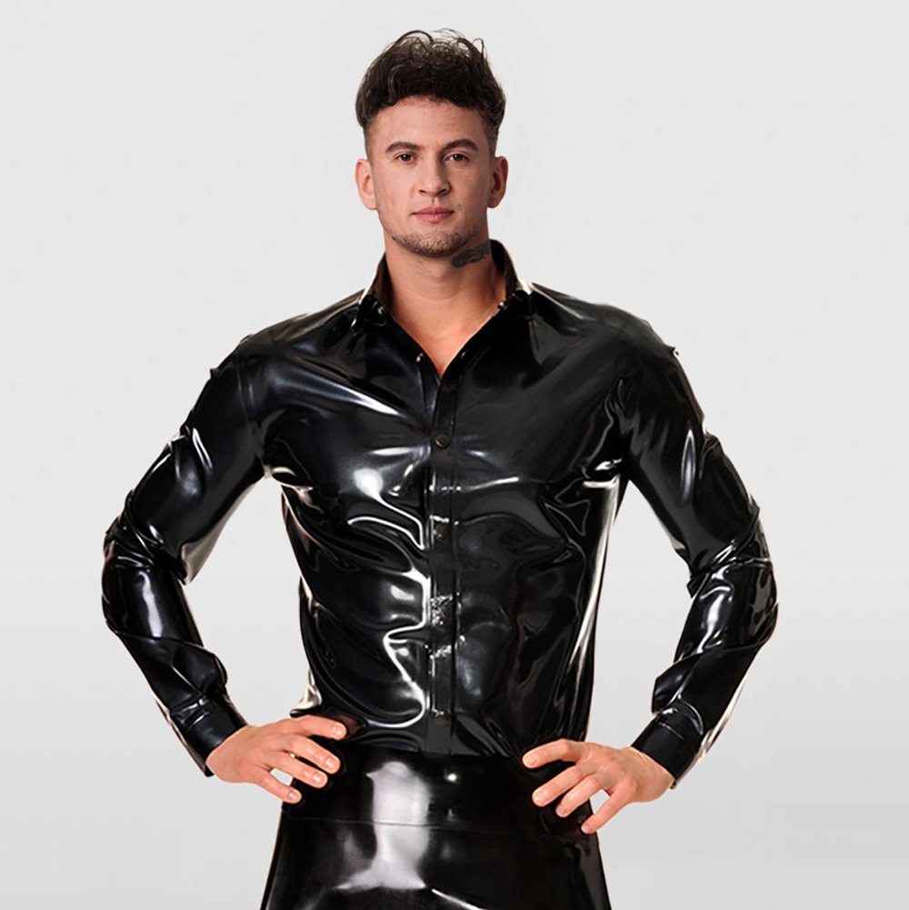 LATEX TOP MINIMALIST STYLE LONG-SLEEVE GENTLEMAN SHIRTMen’s Latex Long-Sleeve Shirt – Modern Fashion / Casual Gentleman Style