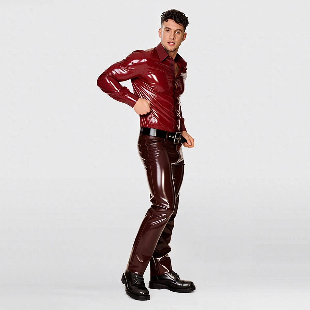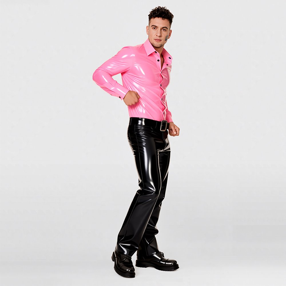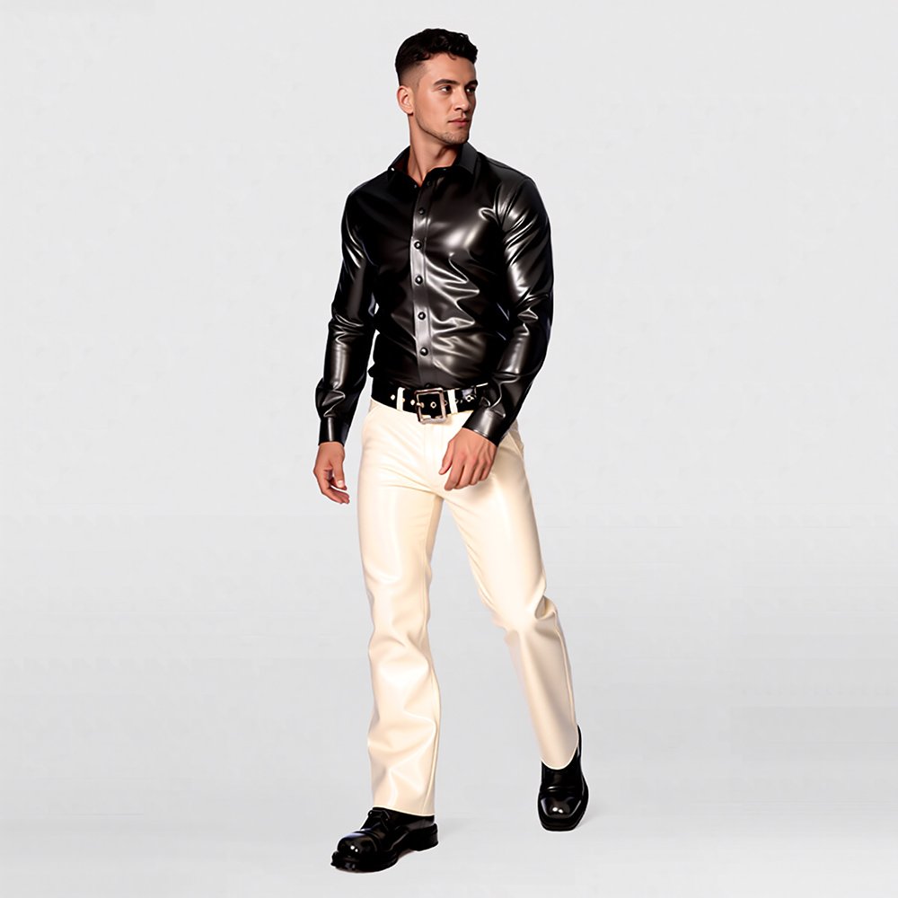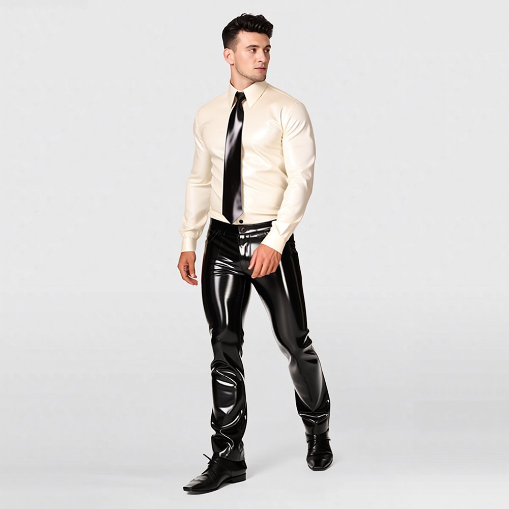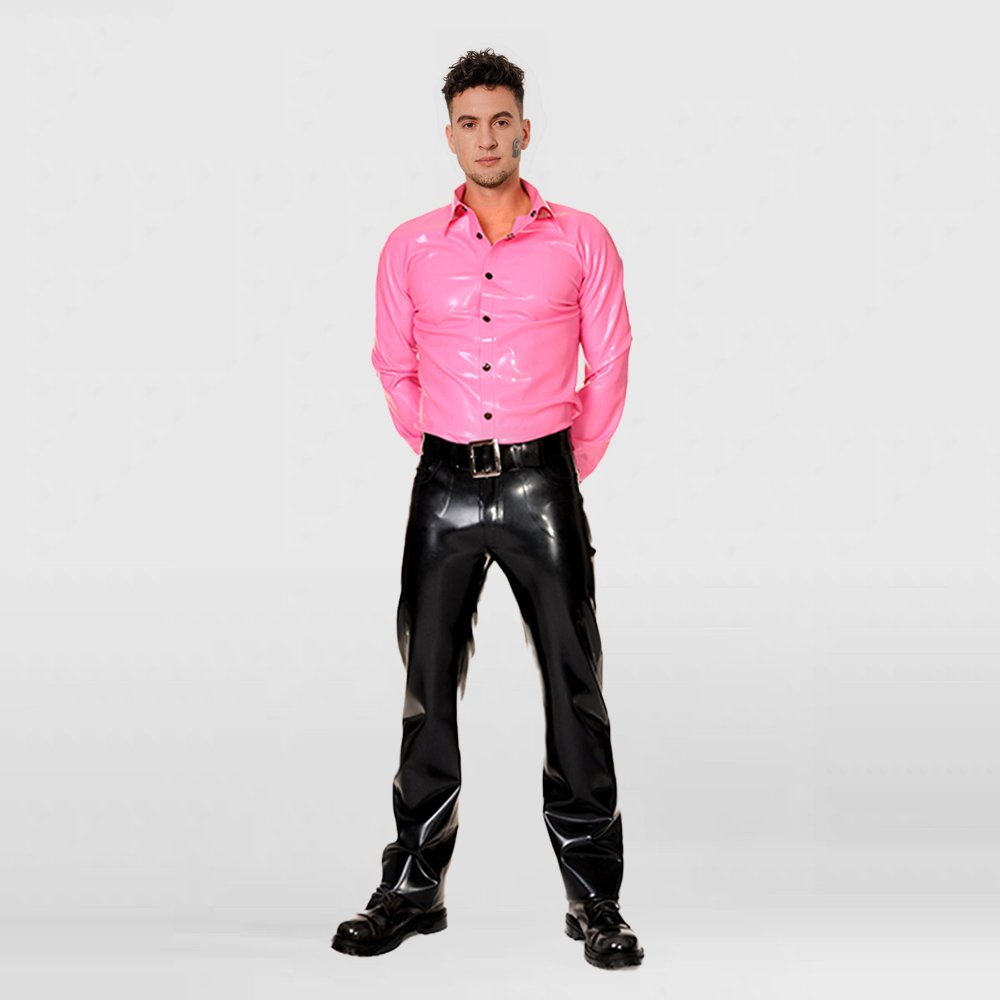 LATEX TOP MINIMALIST STYLE LONG-SLEEVE GENTLEMAN SHIRTMen’s Latex Long-Sleeve Shirt – Modern Fashion / Casual Gentleman Style