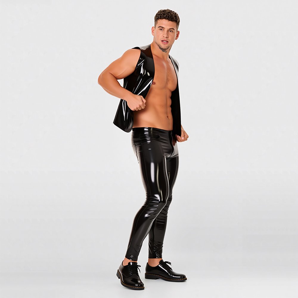 LATEX TOP MEN’S SOLID COLOR MINIMALIST OPEN-FRONT VESTMen’s Solid Color Latex Top-Minimalist Open-Front Vest