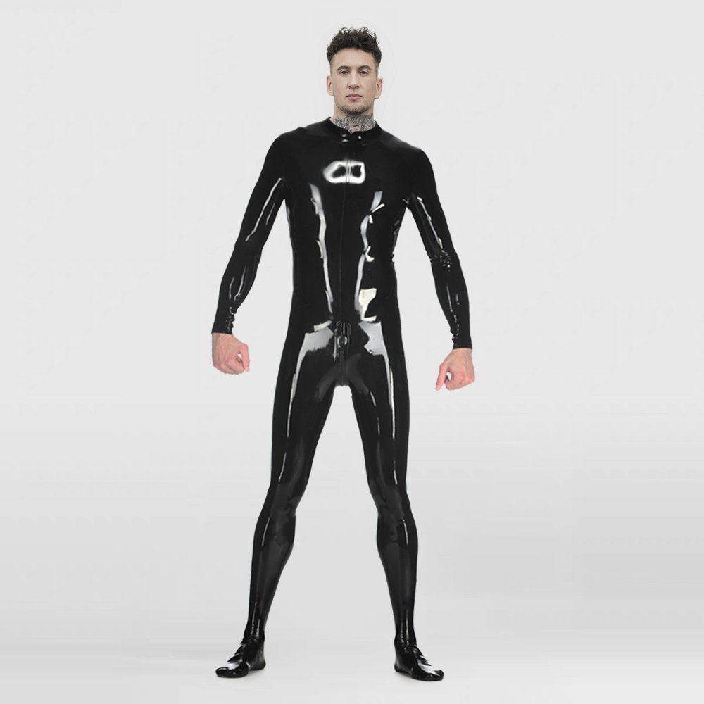 Minimalist Solid-Color Latex Catsuit – Full-Body, Footed Design