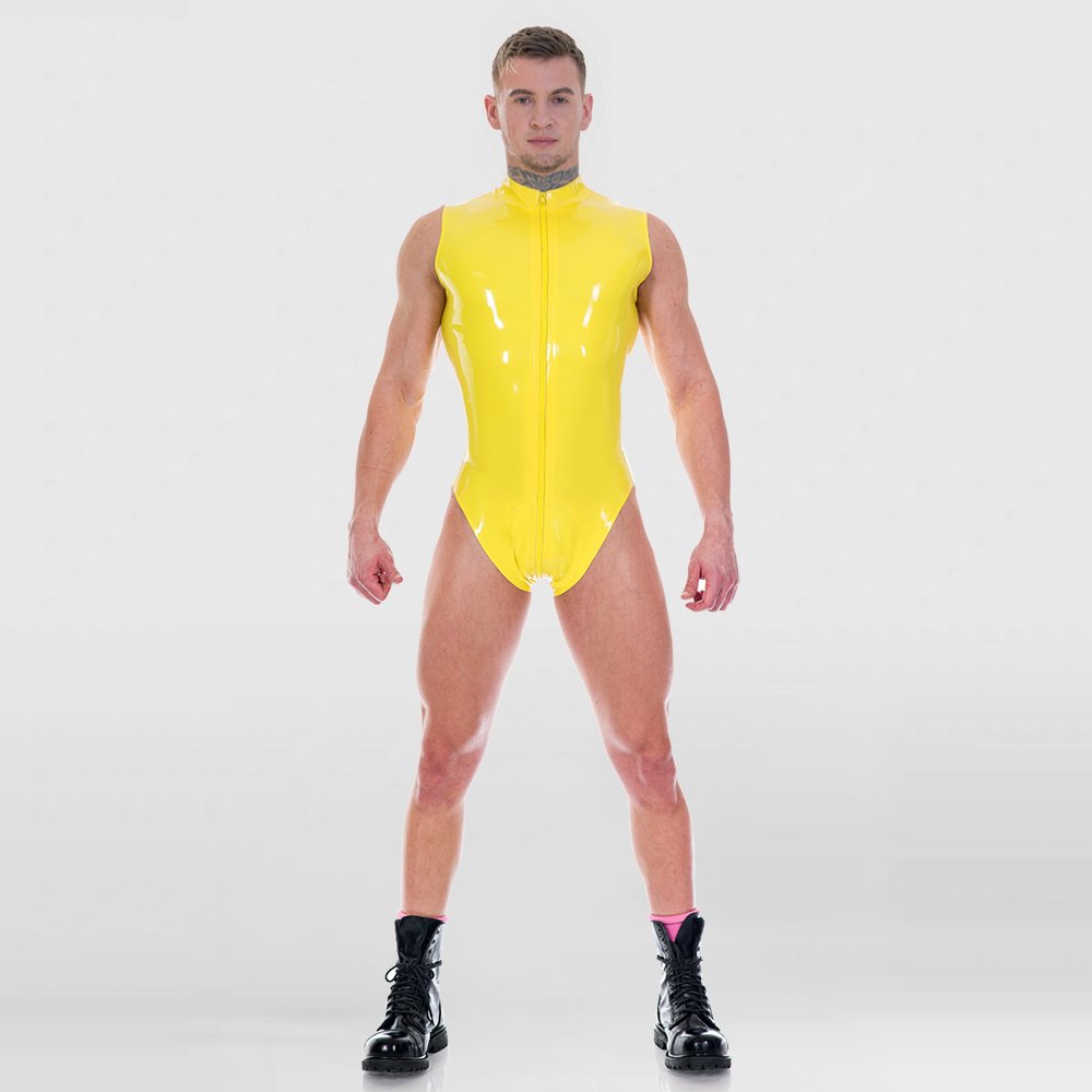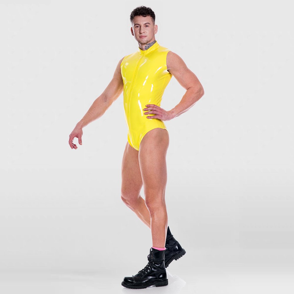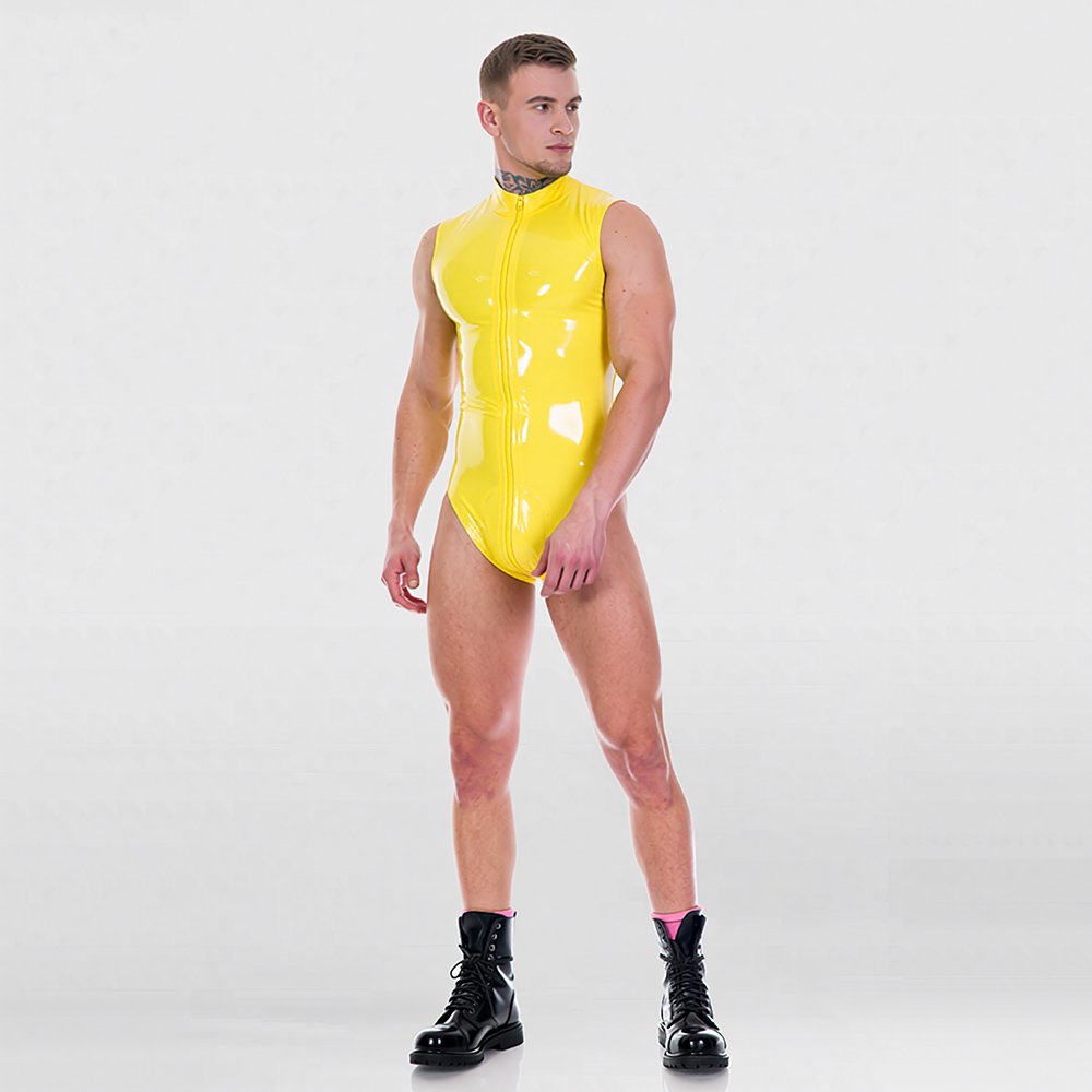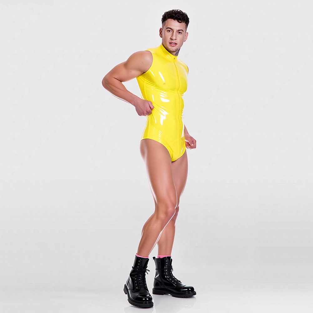 Sleeveless Latex Bodysuit for Men – High-Slit Tight-Fit Sleek Design