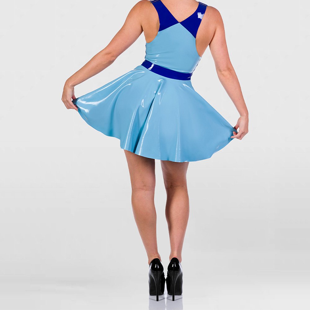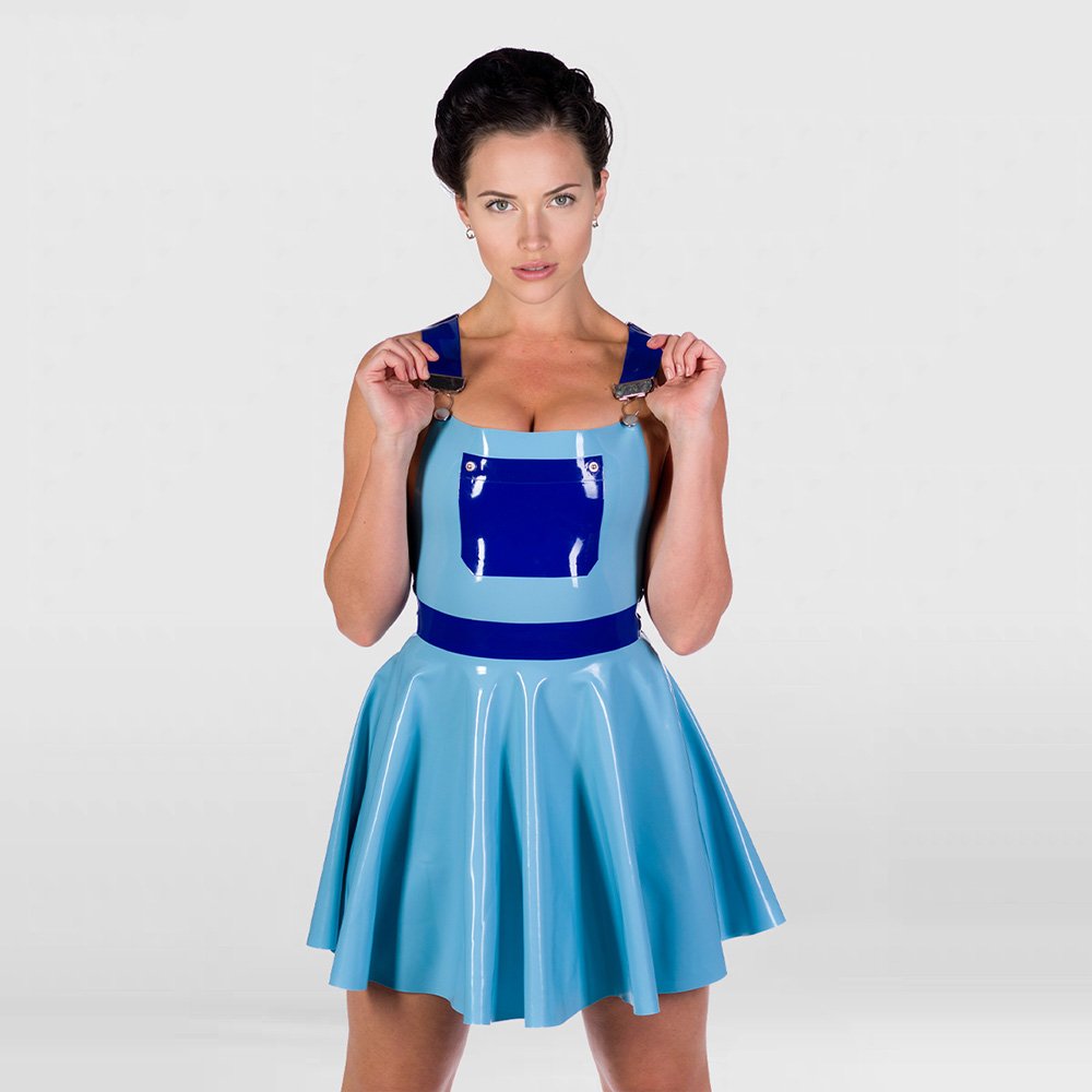 Women’s Latex Skirt Dress – Spaghetti Straps with Bib Detail