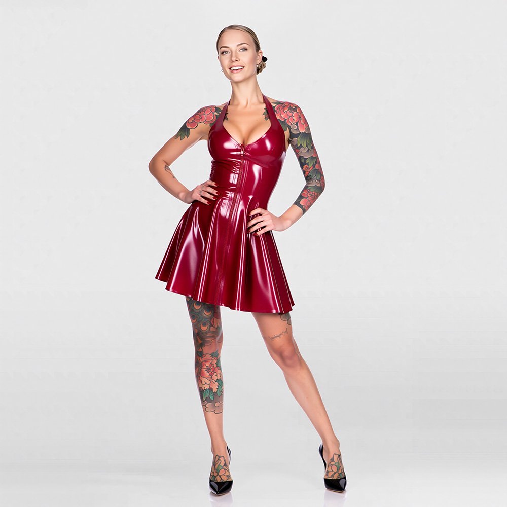 Women’s Latex Swing Dress – Backless with A-Line Hem