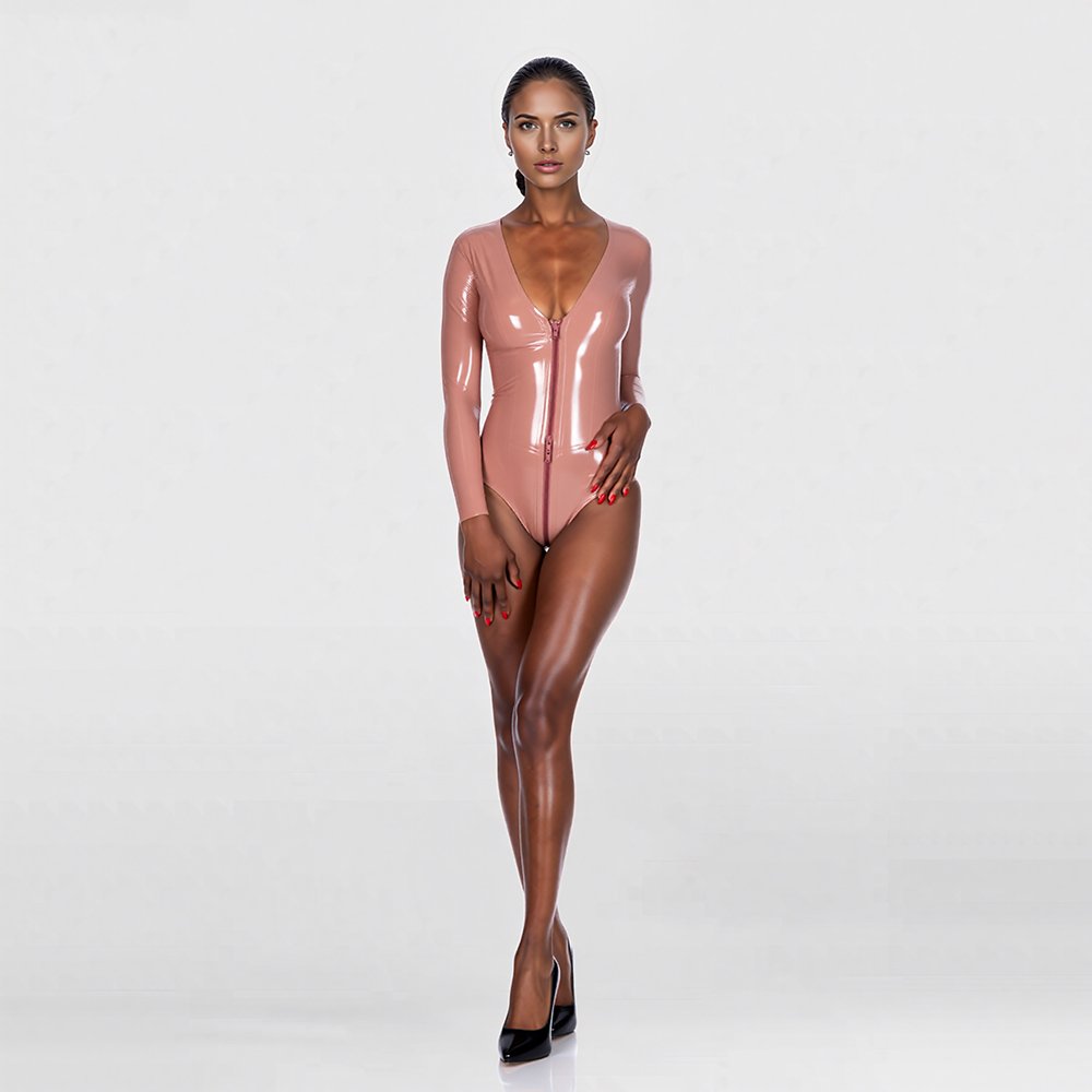 Women’s Long Sleeve Latex Bodysuit – V-Neck Leotard