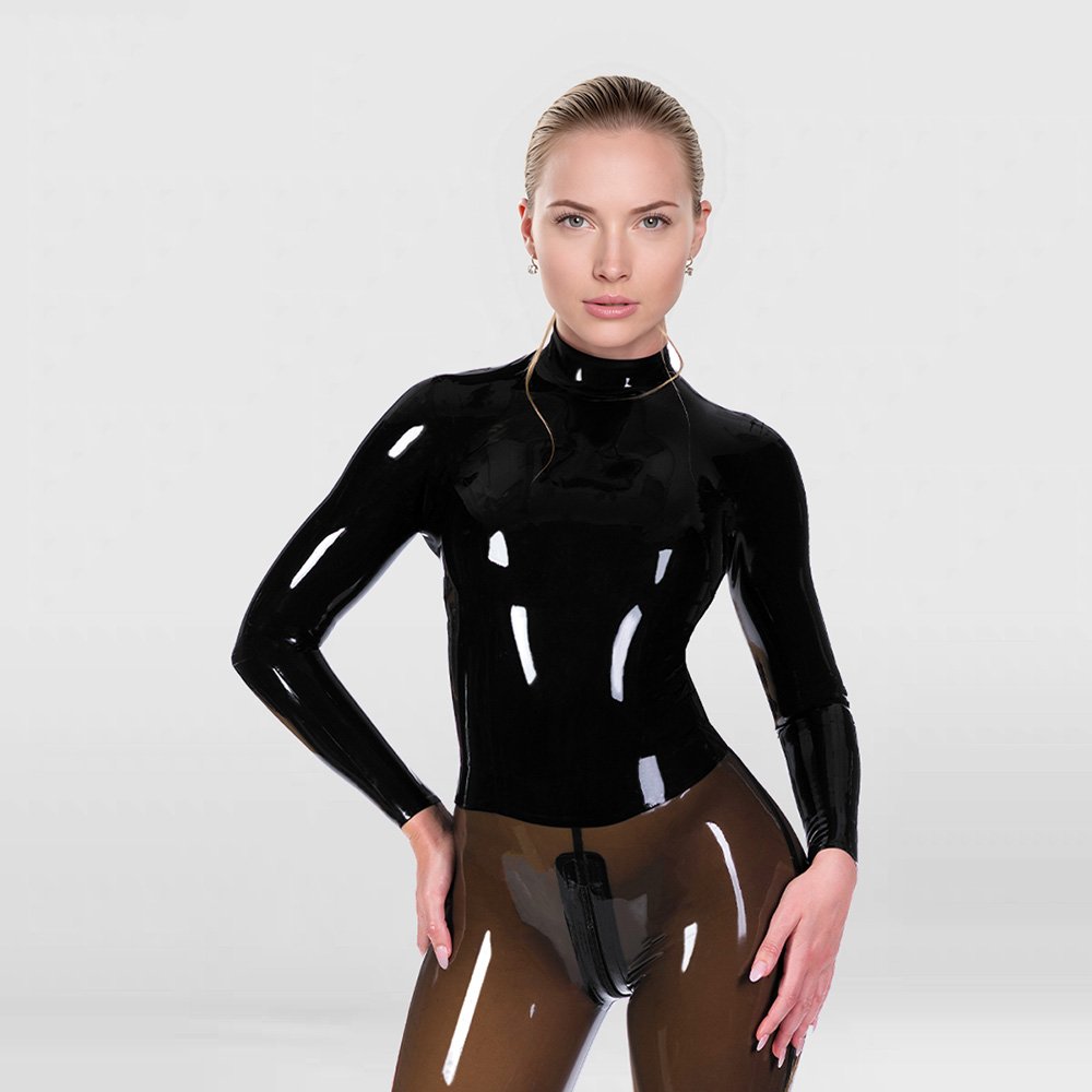 Women’s Solid-Color Latex Top – Slim Fit with Front Zipper
