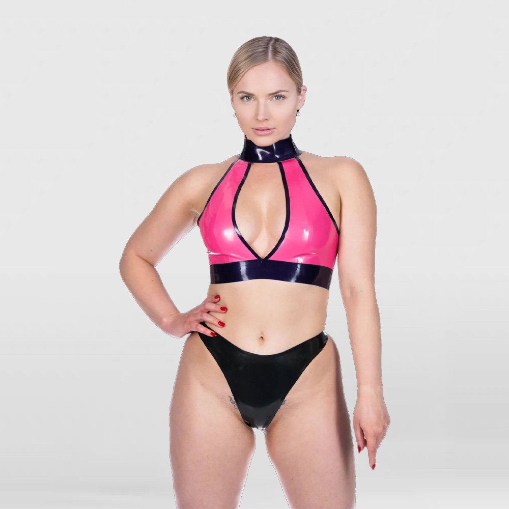 Women’s Two-Tone Latex Bra with Neck Halter and Wire-Free Design$59.00Select options