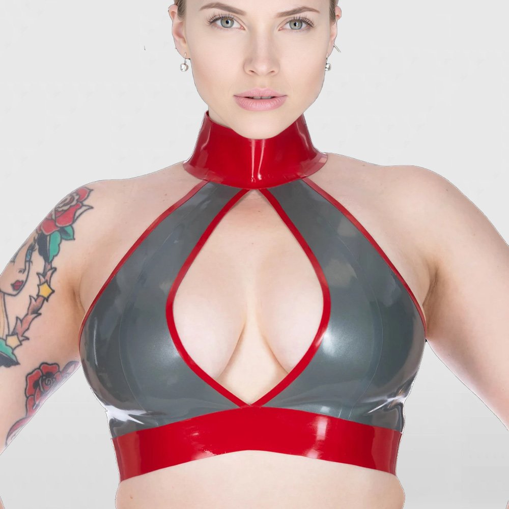 Women’s Two-Tone Latex Bra with Neck Halter and Wire-Free Design